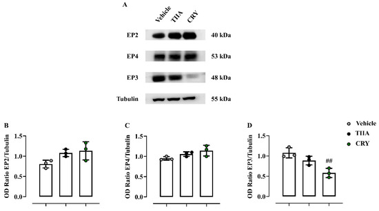3.3. Effect of TIIA and CRY on EP Receptor
