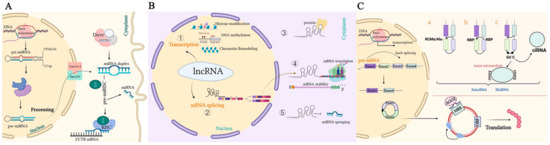 69. Yoon, J.H.; Abdelmohsen, K.; Gorospe, M. Posttranscriptional gene regulation by long noncoding RNA. J. Mol. Biol. 2013, 425, 3723–3730. [Google Scholar] [CrossRef]