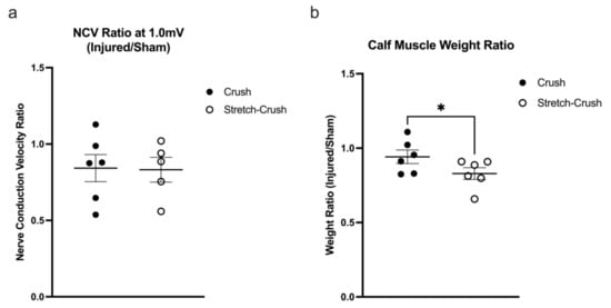 - Varejão, A.S.P.; Cabrita, A.M.; Meek, M.F.; Bulas-Cruz, J.; Melo-Pinto, P.; Raimondo, S.; Geuna, S.; Giacobini-Robecchi, M.G. Functional and Morphological Assessment of a Standardized Rat Sciatic Nerve Crush Injury with a Non-Serrated Clamp. J. Neurotrauma 2004, 21, 1652–1670. [Google Scholar] [CrossRef]
