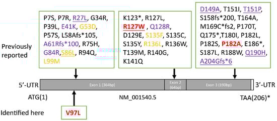 - Tang, B.; Liu, X.; Zhao, G.; Luo, W.; Xia, K.; Pan, Q.; Cai, F.; Hu, Z.; Zhang, C.; Chen, B.; et al. Mutation analysis of the small heat shock protein 27 gene in chinese patients with Charcot-Marie-Tooth disease. Arch. Neurol. 2005, 62, 1201–1207. [Google Scholar] [CrossRef]
