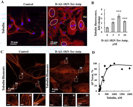 4.3. D-Δ(1-18)N-Ter-Antp-Induced Morphological Changes Is Associated with the Re-Organization of Actin and Tubulin Filaments