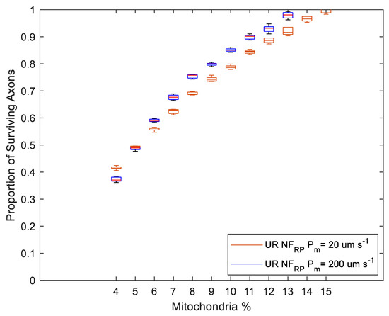 Sadun et al. [16] proposed a novel LHON axonal degeneration predictor that they named the axonal stress index (NFL-SI). The index resembles Equation (9) in that there is inverse proportionality with the axonal radius. Applying NFL-SI framework to the mitochondria, we can observe that, in the RPFCONST hypothesis, mitochondria in smaller axons will experience greater oxidative stress.