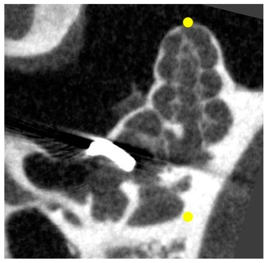 - Lexow, G.J.; Schurzig, D.; Gellrich, N.C.; Lenarz, T.; Majdani, O.; Rau, T.S. Visualization, Measurement and Modelling of the Cochlea Using Rotating Midmodiolar Slice Planes. Int. J. Comput. Assist. Radiol. Surg. 2016, 11, 1855–1869. [Google Scholar] [CrossRef] [PubMed]