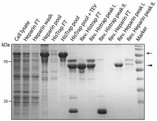 Another level of versatility of the method is changing the order of the affinity chromatography steps. By starting with HisTrap followed by Heparin, the method seems to be more general. However, starting with Heparin followed by HisTrap has the advantage of enabling the application of an increased amount of reducing agent during cell lysis. Furthermore, the elution buffer of the Heparin chromatography step is more compatible with the loading buffer of the HisTrap purification step, hence requiring less buffer exchange steps to ensure a faster workflow. Nonetheless, our experience with this system has shown us that it is best to optimize which order works best for a given target protein.