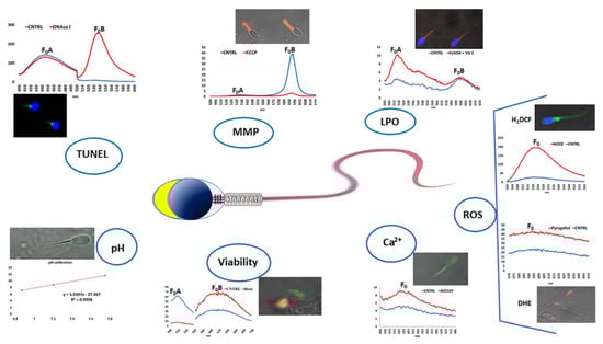 - Harrison, R.; Vickers, S.E. Use of fluorescent probes to assess membrane integrity in mammalian spermatozoa. Reproduction 1990, 88, 343–352. [Google Scholar] [CrossRef]