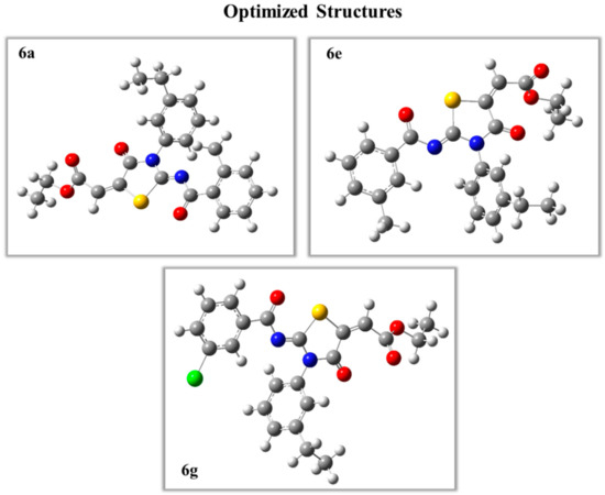 Illustration of optimized structural geometries of compound 6a, 6e, and 6g.