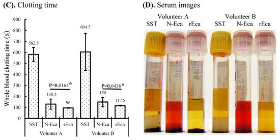 - Zhao, K.N.; Dimeski, G.; de Jersey, J.; Johnson, L.A.; Grant, M.; Masci, P.P.; Lavin, M.F. Next-generation rapid serum tube technology using prothrombin activator coagulant: Fast, high-quality serum from normal samples. Clin. Chem. Lab. Med. 2019, 57, 483–497. [Google Scholar] [CrossRef]