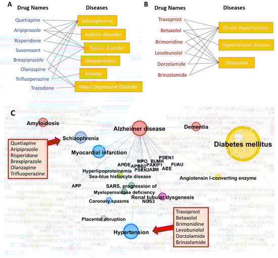 3.7. Diseasome Analysis—Relationships between AD and Other Diseases