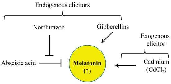 - Back, K. Melatonin metabolism, signaling and possible roles in plants. Plant J. 2021, 105, 376–391. [Google Scholar] [CrossRef] [PubMed]