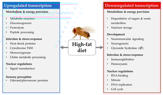 3. Obesity Phenotype of D. melanogaster Following a High-Sugar or High-Fat Diet
