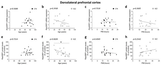 3.1. RasGRP1 Protein Levels Negatively Correlate with Age in the DLPFC of Schizophrenia Patients