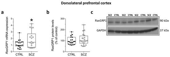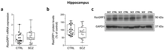 3.4. Unaltered RasGRP1 mRNA and Protein Levels in the Hippocampus of Schizophrenia Patients
