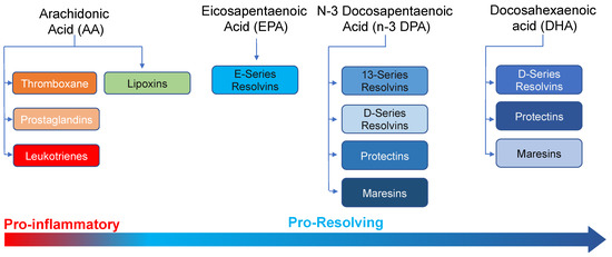 - Serhan, C.N.; Levy, B.D. Resolvins in inflammation: Emergence of the pro-resolving superfamily of mediators. J. Clin. Investig. 2018, 128, 2657–2669. [Google Scholar] [CrossRef]