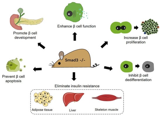 84. Wang, H.-L.; Wei, B.; He, H.-J.; Huang, X.-R.; Sheng, J.-Y.; Chen, X.-C.; Wang, L.; Tan, R.-Z.; Li, J.-C.; Liu, J.; et al. Smad3 deficiency improves islet-based therapy for diabetes and diabetic kidney injury by promoting β cell proliferation via the E2F3-dependent mechanism. Theranostics 2022, 12, 379–395. [Google Scholar] [CrossRef]