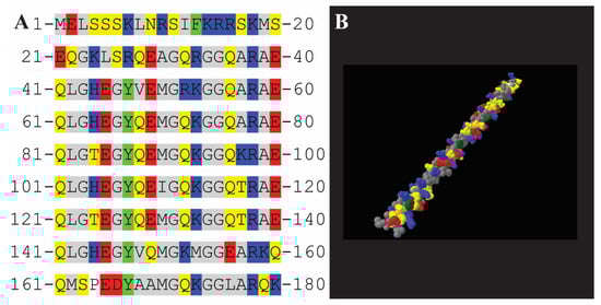 I-Tasser (https://zhanggroup.org/I-TASSER/, last accessed on 20 February 2022) predicts the structure of proteins by comparing the portions of known crystal structures available from the protein data bank (PDB, https://www.rcsb.org, last accessed on 20 February 2022) to the queried polypeptide and combining them into models using a hierarchical ranking system [25,26,27]. The protein modeling software Swiss PDBViewer (DeepView) (https://spdbv.unil.ch, last accessed on 20 February 2022) was used to visualize the potential hydrophobic face of the AfLEA1’s α-helices [28]. The potential for phase separation of AfLEA1 was evaluated using catGranule (http://service.tartaglialab.com, last accessed on 20 February 2022) [29].