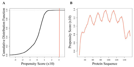 The bioinformatics program catGranule predicts that AfLEA1 has a high propensity towards liquid–liquid phase separation in the presence of RNA. (A) A cumulative distribution fraction analysis of the amino acids of AfLEA1 produces a propensity score of 3.05, and a score > 1 is a predictor of LLPS behavior. (B) The residue-level propensity of AfLEA1 to undergo LLPS, where values above 0 indicate an increased likelihood of undergoing LLPS in the presence of RNA.