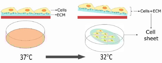 Cell sheet engineering is a novel technique that allows the acquirement of cells in a sheet format, without the application of proteolytic enzymes or other disruptive method, thus enabling the preservation of ECM components [] (Figure 1).