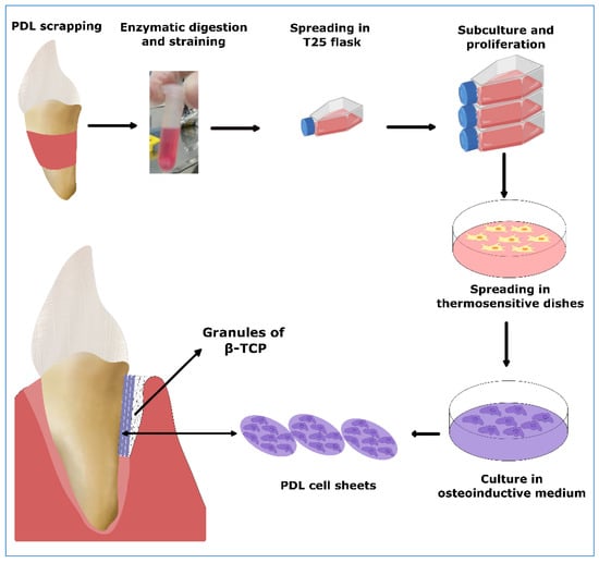 - Onizuka, S.; Iwata, T. Application of periodontal ligament-derived multipotent mesenchymal Stromal cell sheets for periodontal regeneration. Int. J. Mol. Sci. 2019, 20, 2796. [Google Scholar] [CrossRef]