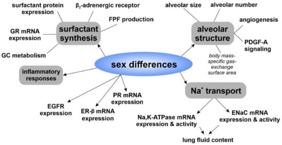 Sex differences in fetal lungs. Studies showed that the fetal sex has multiple effects on the developing alveolar structures, surfactant synthesis and Na+ transport, among others.