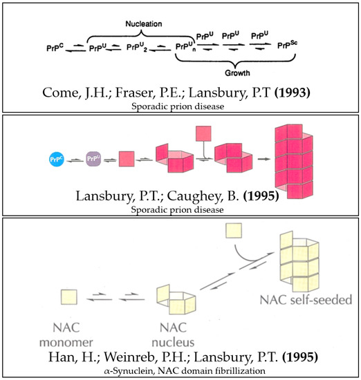 - Come, J.H.; Fraser, P.E.; Lansbury, P.T. A Kinetic Model for Amyloid Formation in the Prion Diseases: Importance of Seeding. Proc. Natl. Acad. Sci. USA 1993, 90, 5959–5963. [Google Scholar] [CrossRef] [Green Version]
