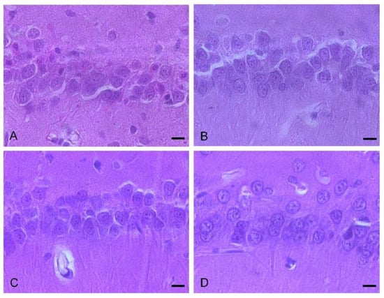 Hippocampal cell counts of (A) sham conditioning (n = 9), (B) true conditioning (n = 9), (C) vehicle (n = 9) and (D) resveratrol conditioning groups (n = 7) (bar length is 10 µm).