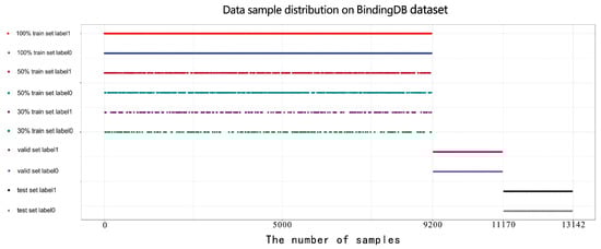 In the third step, we divided all samples into training, validation, and test sets according to the ratio of 7:1.5:1.5. Ultimately, we included 9200 samples in the training set, 1970 samples in the validation set, and 1972 samples in the test set. The proportion of positive and negative samples in each set is 1:1. Meanwhile, we randomly selected 50% and 30% of the training set to construct 50% and 30% datasets for evaluating our model on small datasets. The specific information is shown in Table 2. All models were only trained by the training sets; then, the optimal model among them was identified through validation sets. Ultimately, all experimental results were obtained by applying the selected models to the test sets.