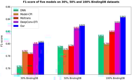 Comparisons of different models on F1-socre (Our = Multi-TransDTI).