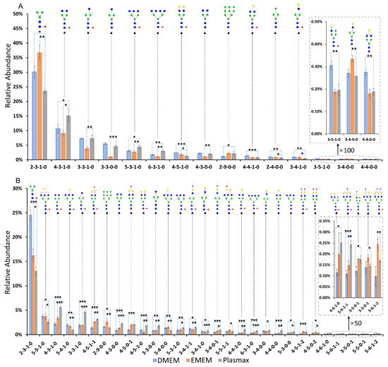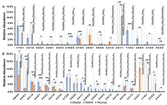 3.4. N-Glycan Expression Changes among Plasmax, DMEM, and EMEM