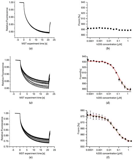 3.3. Microscale Thermophoresis (MST) Results