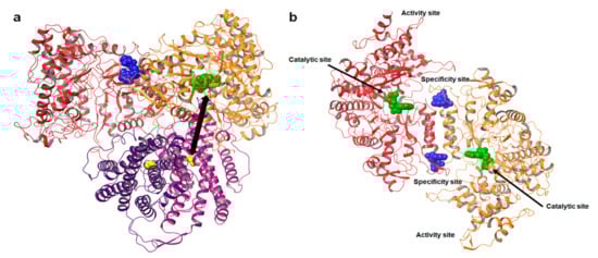 - Zimanyi, C.M.; Chen, P.Y.; Kang, G.; Funk, M.A.; Drennan, C.L. Mol.ecular basis for allosteric specificity regulation in class Ia ribonucleotide reductase from Escherichia coli. eLife 2016, 5, e07141. [Google Scholar] [CrossRef]