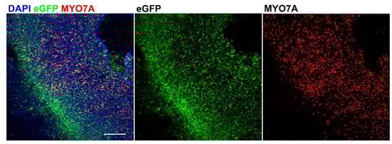 3.3. Quantification of eGFP-Positive Hair Cells and Transduction Efficiency