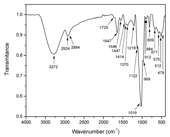 FTIR spectroscopy was used to determine the main functional groups and the chemical structure of the EPS. The FTIR spectra of B. haynesii EPS are shown in Figure 6.