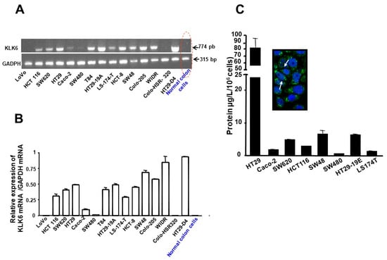 19. Kim, J.T.; Song, E.Y.; Chung, K.S.; Kang, M.A.; Kim, J.W.; Kim, S.J.; Yeom, Y.I.; Kim, J.H.; Kim, K.H.; Lee, H.G. Upregulation and clinical significance of serine protease kallikrein 6 in colon cancer. Cancer 2011, 117, 2608–2619. [Google Scholar] [CrossRef]