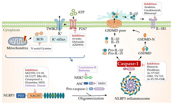 inflammasome; NLRP3; AIM2; caspase; IL-1β; GSDMD; inflammation; targeting; disease; inhibitor 1. Introduction