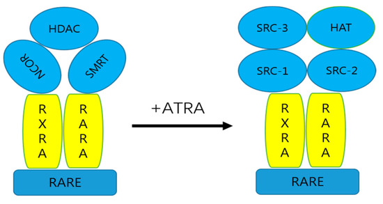 - Rochel, N.; Moras, D. Architecture of DNA Bound RAR Heterodimers. Biochem. Retin. Acid Recept. I Struct. Act. Funct. Mol. Level 2014, 70, 21–36. [Google Scholar] [CrossRef]