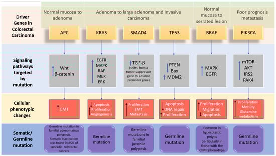 - Raskov, H.; Søby, J.H.; Troelsen, J.; Bojesen, R.D.; Gögenur, I. Driver gene mutations and epigenetics in colorectal cancer. Ann. Surg. 2020, 271, 75–85. [Google Scholar] [CrossRef]