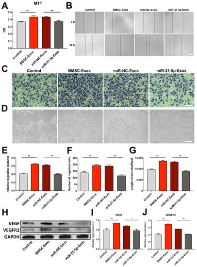 3.7. BMSC-Exos Promoted HUVECs Angiogenesis by Transferring miR-21-5p