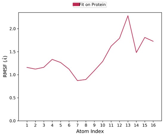 Ligand RMSF plot for characterizing changes in the ligand atom positions. The RMSF of all the atoms are not more than 2Å, which indicates that the binding is stable.