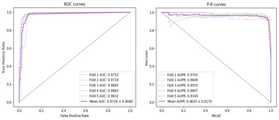 We adopted evaluation indexes that are frequently used to evaluate the performance of the machine learning model, including Accuracy (ACC), Precision (PRE), Recall (REC) and F1-Score. The larger the above evaluation index value is, the more outstanding the performance of the model is. In order to further explore the model effect, we describe the receiver operating characteristic curve (ROC) and precision-recall curve (PR). From these, the area under the receiver operating characteristic curve (AUC) [38] and the area under the precision-recall curve can be calculated (AUPR) [39] to fully reflect the performance of the model.