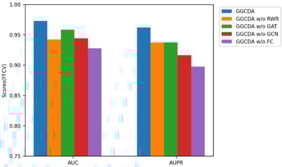 Since our model is composed of several sections, in this part, ablation studies were conducted based on the CircR2Disease database. In order to judge the influence of each component on the overall performance of the model, FFCV was performed, and ablation studies were mainly conducted on the following variants.