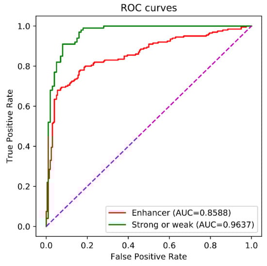 Another dataset was used for the independent test, which was from reference [46]. The contained 100 strong enhancers , 100 weak enhancers and 100 non-enhancers . The sequence identities between any two enhancers are not more than 0.8 by processing by CD-HIT [71,72,73].