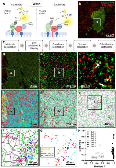 - Levet, F.; Julien, G.; Galland, R.; Butler, C.; Beghin, A.; Chazeau, A.; Hoess, P.; Ries, J.; Giannone, G.; Sibarita, J.-B. A tessellation-based colocalization analysis approach for single-molecule localization microscopy. Nat. Commun. 2019, 10, 2379. [Google Scholar] [CrossRef]