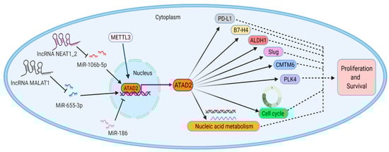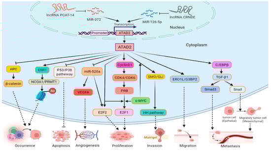 ATAD2 was investigated to be highly expressed in renal cancer, and ATAD2 serves as a target of miR-372 directly in renal cancer cell lines and is regulated negatively by miR-372, which in turn affects cancer cell invasion, metastasis, and EMT function. ATAD2 is an attractive biomarker and therapeutic target for renal cancer [,].