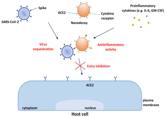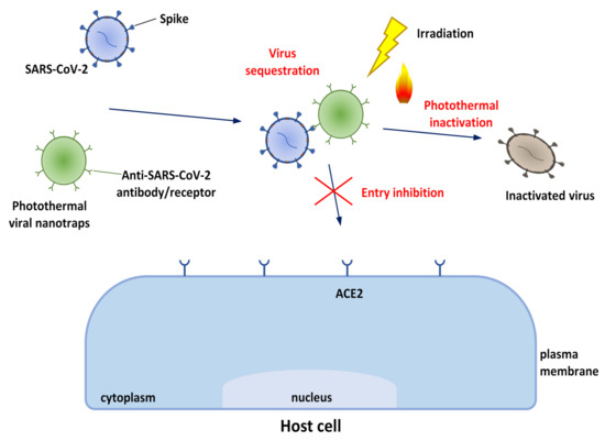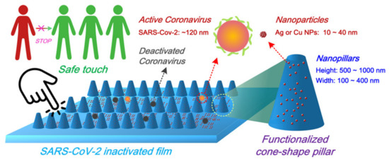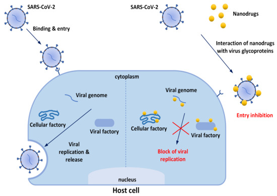 - Rashidzadeh, H.; Danafar, H.; Rahimi, H.; Mozafari, F.; Salehiabar, M.; Rahmati, M.A.; Rahamooz-Haghighi, S.; Mousazadeh, N.; Mohammadi, A.; Ertas, Y.N.; et al. Nanotechnology against the novel coronavirus (severe acute respiratory syndrome coronavirus 2): Diagnosis, treatment, therapy and future perspectives. Nanomedicine 2021, 16, 497–516. [Google Scholar] [CrossRef]