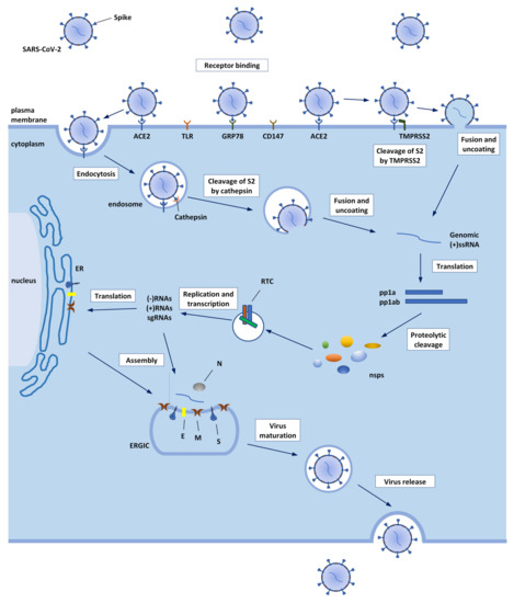 - Perlman, S.; Netland, J. Coronaviruses post-SARS: Update on replication and pathogenesis. Nat. Rev. Microbiol. 2009, 7, 439–450. [Google Scholar] [CrossRef]