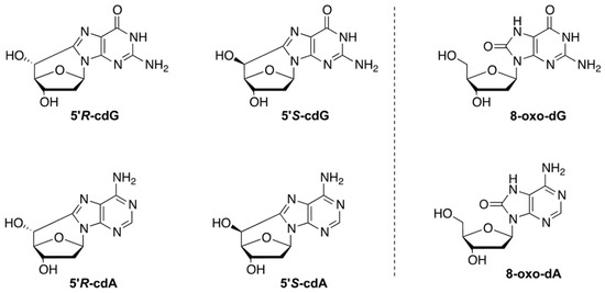 | 5′R-cdG | 5′R-cdA | 5′S-cdG | 5′S-cdA | 8-oxo-dG | 8-oxo-dA | |