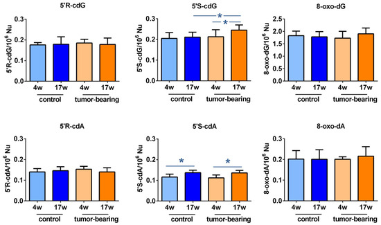 - Wang, J.; Clauson, C.L.; Robbins, P.D.; Niedernhofer, L.J.; Wang, Y. The oxidative DNA lesions 8,5′-cyclopurines accumulate with aging in a tissue-specific manner. Aging Cell 2012, 11, 714–716. [Google Scholar] [CrossRef] [Green Version]