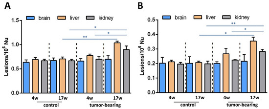 - Redon, C.E.; Dickey, J.S.; Nakamura, A.J.; Kareva, I.G.; Naf, D.; Nowsheen, S.; Kryston, T.B.; Bonner, W.M.; Georgakilas, A.G.; Sedelnikova, O.A. Tumors induce complex DNA damage in distant proliferative tissues in vivo. Proc. Natl. Acad. Sci. USA 2010, 107, 17992–17997. [Google Scholar] [CrossRef] [PubMed] [Green Version]