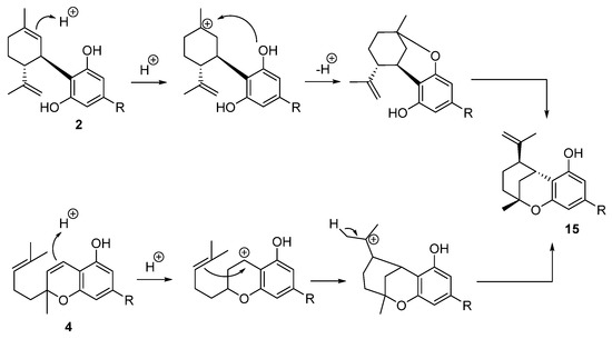 31. Cuadari, A.; Pollastro, F.; Unciti-Broceta, J.D.; Caprioglio, D.; Minassi, A.; Lopatriello, A.; Muñoz, E.; Taglialatela-Scafati, O.; Appendino, G. The Dimerization of Δ9-Tetrahydrocannabinolic Acid A (THCA-A). Acta Pharm. Sin. B 2019, 9, 1078–1083. [Google Scholar] [CrossRef] [PubMed]