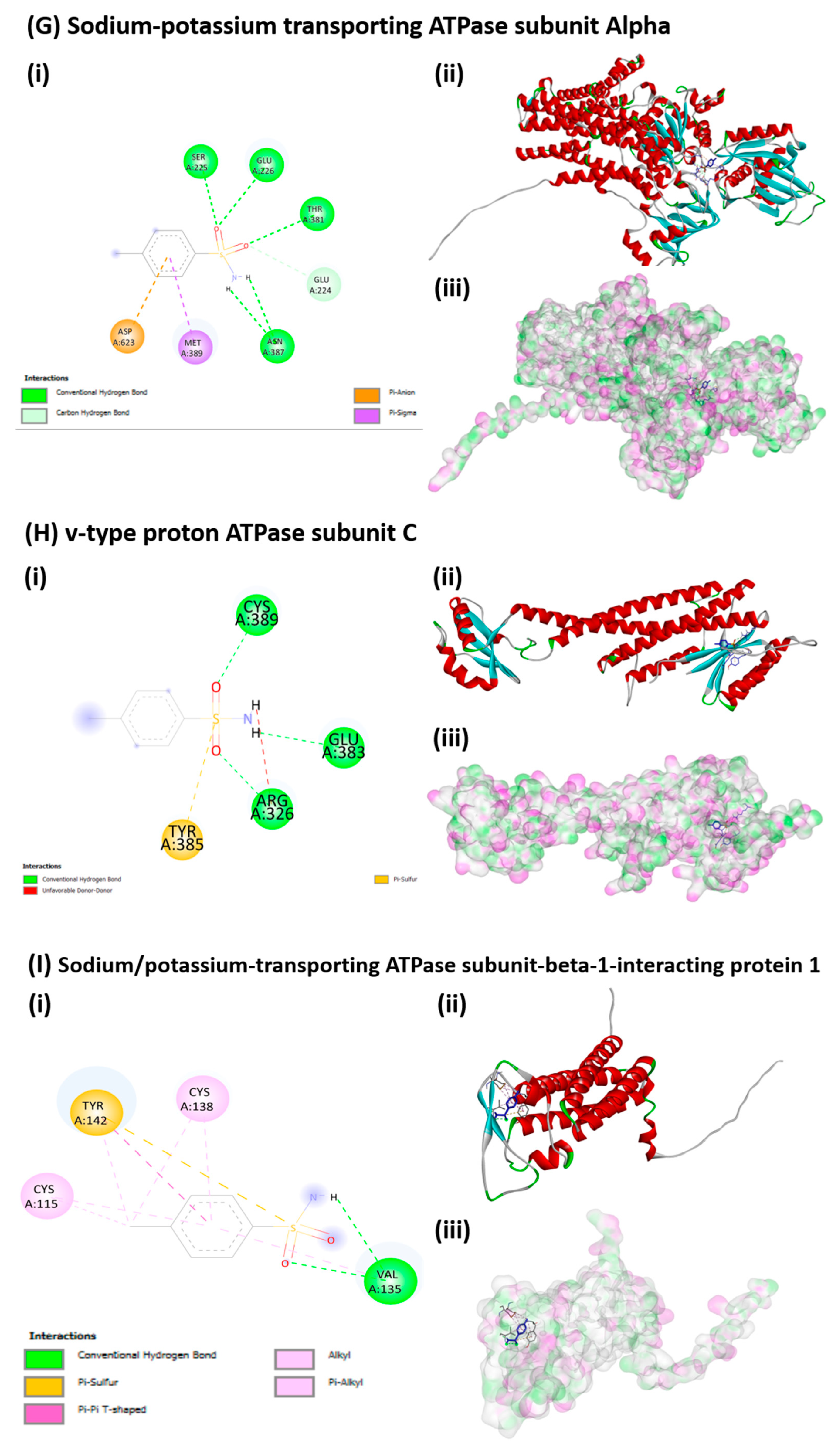 2.8. Molecular Docking of p-TSA to Its Target Proteins
